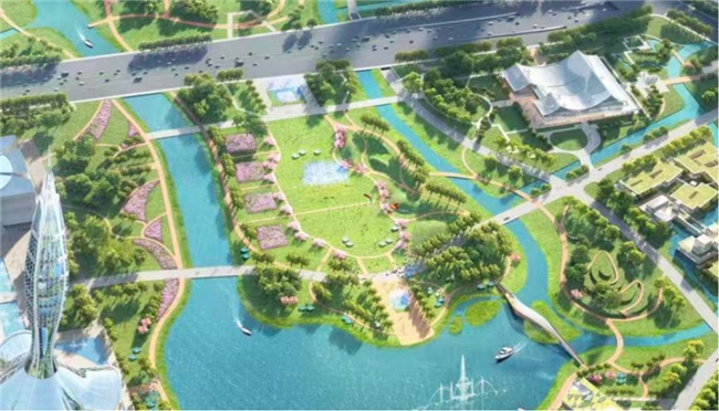 (园区动感草坪实景效果图,周围部分水系分布按现场实际情况为主)