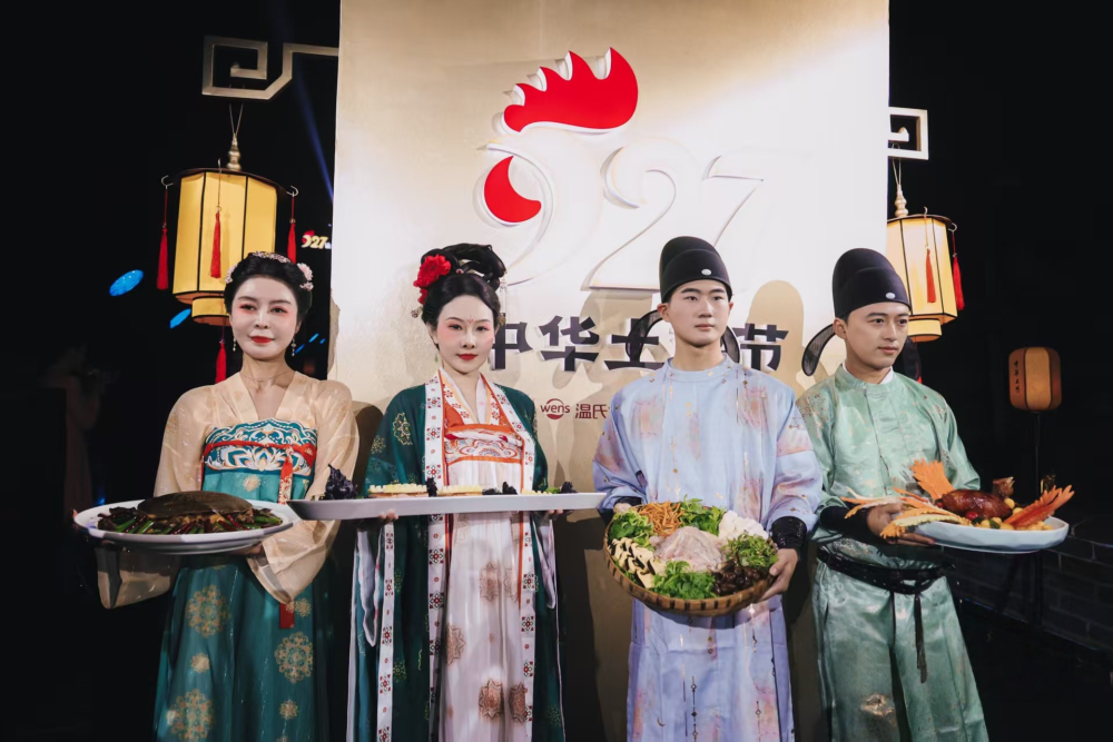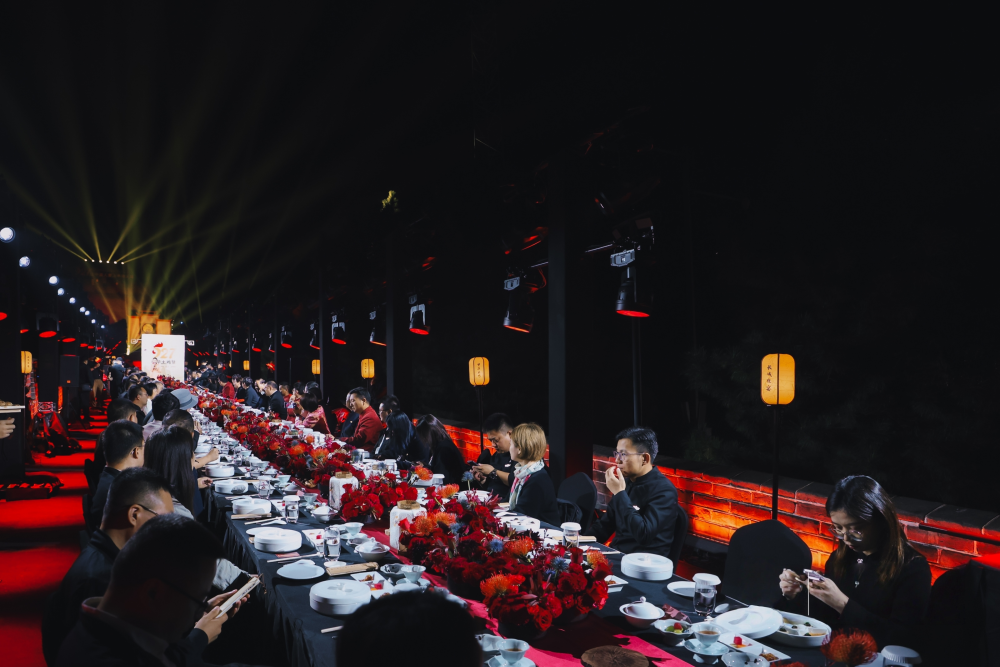 夜幕降临,居庸关长城灯火通明,长桌蜿蜒如龙,近百位嘉宾共赴 中华土鸡长城夜宴 。 中华土鸡长城夜宴 以二十四节气为灵感,由五家土鸡龙头企业精选全国优质品种,打造出二十四道独具时令风味的土鸡菜品,每道菜品不仅呼应节气特征,更在烹饪手法上融合现代创意与传统技艺。